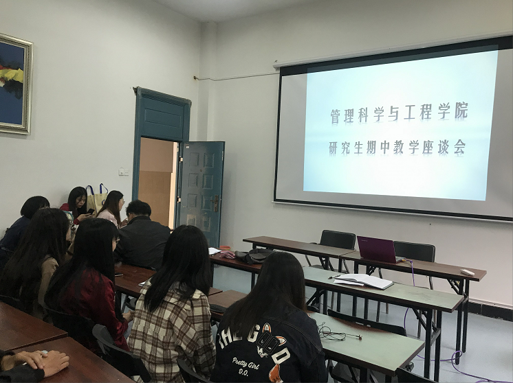 5月8日下午,威尼斯官网在博文楼一楼2号会议室召开了研究生期中教学座谈会,会议由副院长戴道明主持,硕士生导师代表柯健、郑丽琳及管理科学与工程学科研究生参加了座谈会。