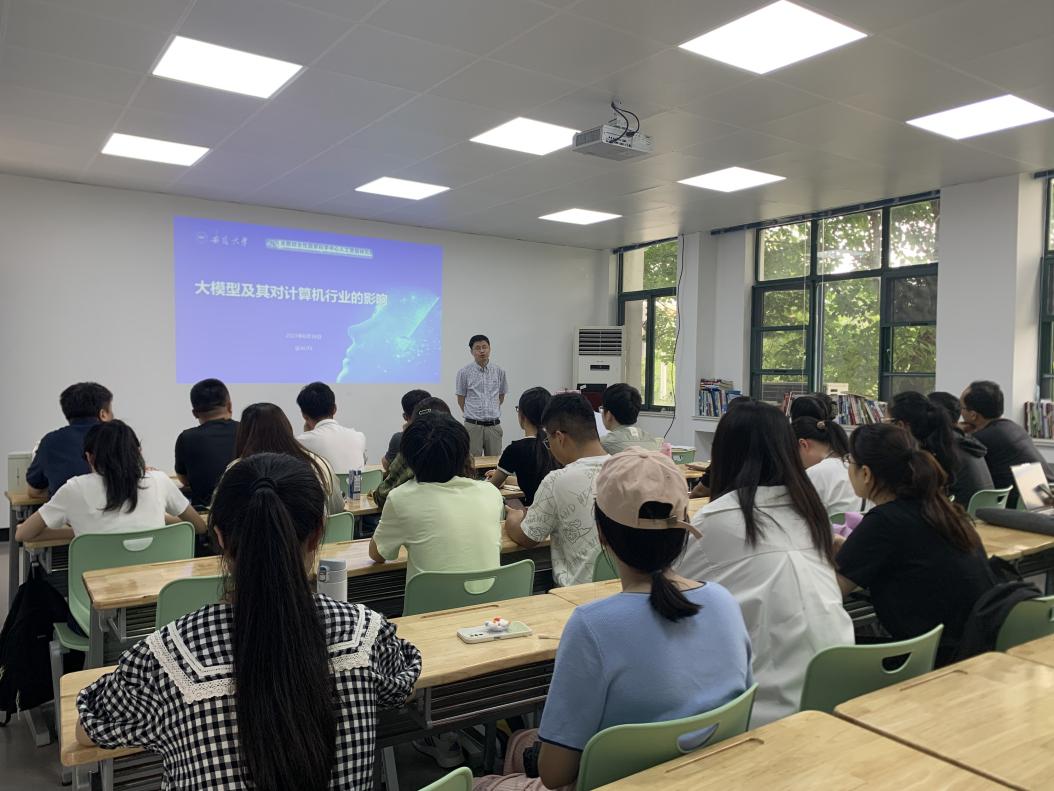 6月16日上午,应8040威尼斯、科研处邀请,中国图象图形学学会理事,中国计算机学会杰出会员,安徽大学计算机学院汤进教授在广学楼211做题为“大模型及其对计算机行业的影响”的学术讲座,报告由副院长魏瑞斌主持,学院部分师生参加了本次报告。
