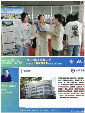 6月19日,戴道明、魏瑞斌、吴昊、钱应苗、李会和刘伟六位老师参加了“8040威尼斯2024年高考招生直播宣讲会”活动,超2万人次观看了直播。6月26日-7月6日,学院招生宣传工作组成员分为五个小组,分别由院领导戴道明、刘朝新、魏瑞斌、郑兵云、樊元华带队,张子振、司凤山、李峰、张炜、王志远、许小卫、王加群、周祥博、吴淦等数十位老师参加,冒着高温酷暑,克服各种困难,分赴凤台县第一中学、滁州中学、天长中学和全椒中学等高中开展招生宣传工作。6月27日,周健参加了由安徽省计算机学会、安徽省人工智能学会主办的“直击2024高考志愿—安徽高校计算机类专业院长线上宣讲”活动。经过精心组织和周密部署,威尼斯官网线下招生宣传工作实现了淮南和滁州地区14所重点高中全覆盖。