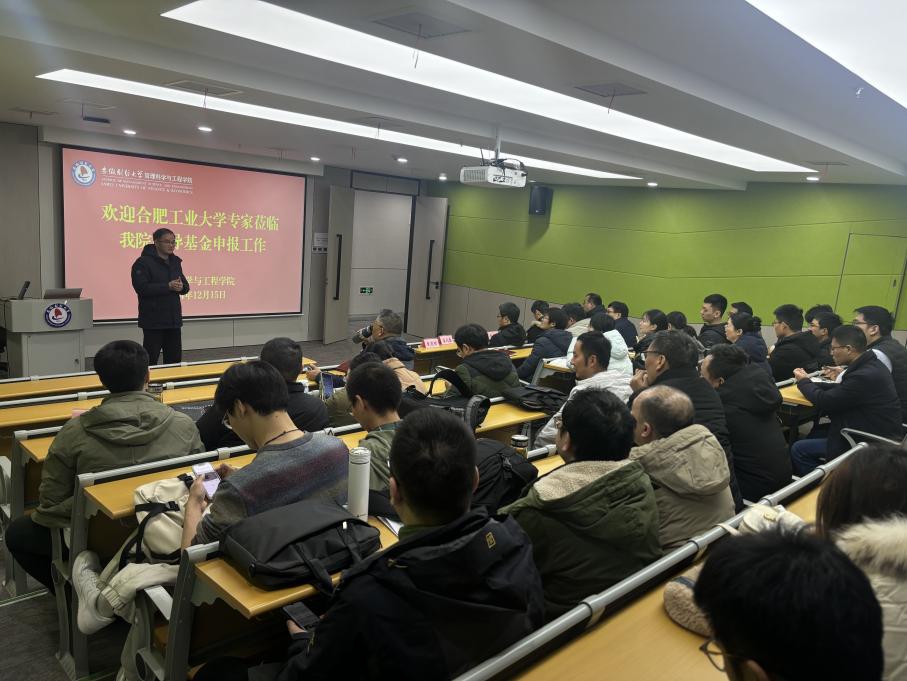 12月15日,应8040威尼斯和科研处邀请,合肥工业大学姜元春教授和赵仲秋教授来到我校合肥中心开展两类国家基金项目(国家社科基金项目和国家自科基金项目)申报辅导,辅导报告由戴道明院长主持,学院各系部和合肥中心青年教师等参与了此次活动。
