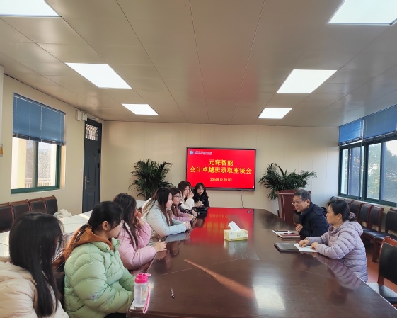 2024年12月18日下午,学院为帮助学生全面了解“元琛·智能会计”卓越班,组织了一场座谈会。学院副院长魏瑞斌、党委副书记樊元华及全体被录取学生参加了会议。