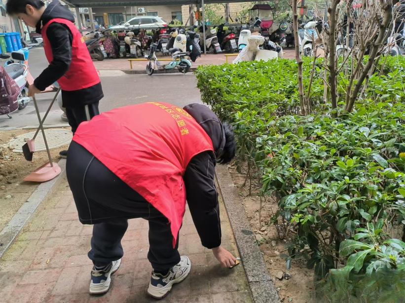 之后,团队来到金地华府小区。志愿者们手持长柄夹,俯身拨开枯叶,从根系缝隙中钳出半埋的烟蒂和碎裂的塑料袋。3号楼前的健身区,锈迹斑斑的漫步机被砂纸打磨得泛起金属光泽,螺丝刀旋紧松动的铆钉时发出规律的咔嗒声。一名队员蹲在垃圾分类箱旁,用湿布擦拭着“可回收物”标识上的雨渍。物业提供的20个加厚垃圾袋逐渐鼓胀,袋口捆扎时,干枯的藤蔓碎屑从缝隙簌簌飘落。